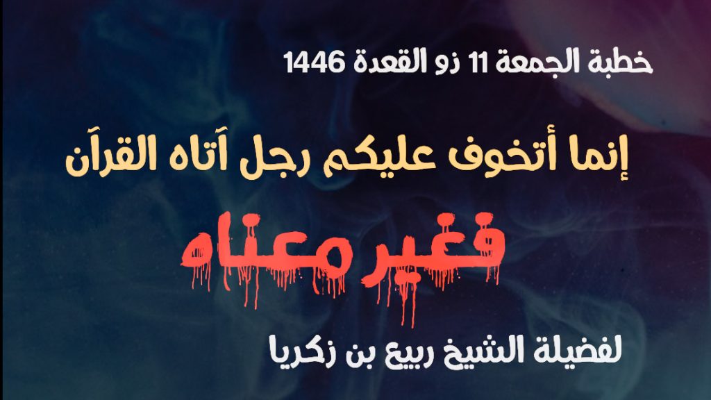 بتاريخ ١١ ذو القعدة ١٤٤٦ لفضيلة الشيخ ربيع بن زكريا حفظه الله